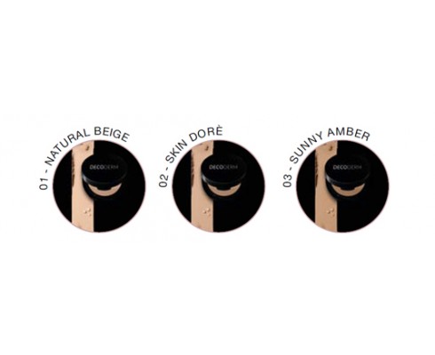 Pick up the product with a soft brush or a beauty blender, taking care to eliminate excess powder, then apply carefully to the face, neck and décolleté. For a more covering effect, wet the applicator slightly.